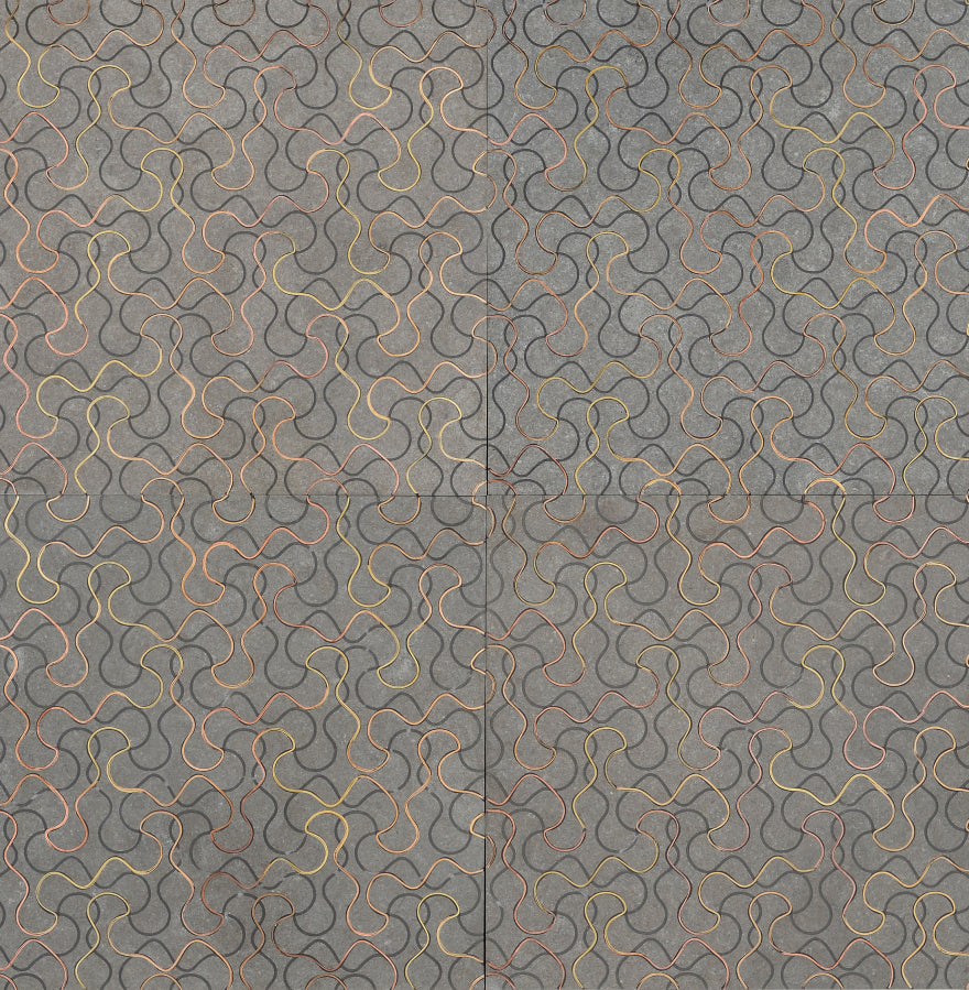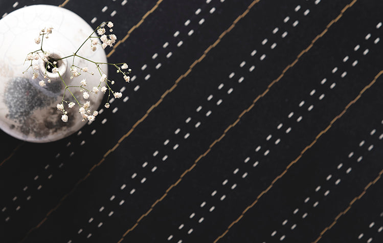 Every piece is made by meticulously embedding brass or stainless steel into natural stone, then honing the two materials until they appear to form a single seamless whole.