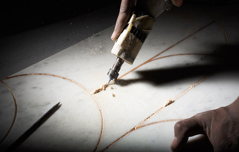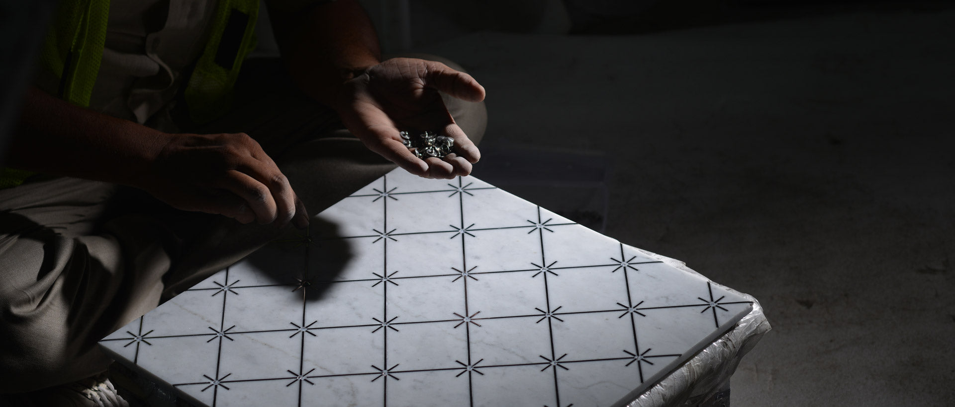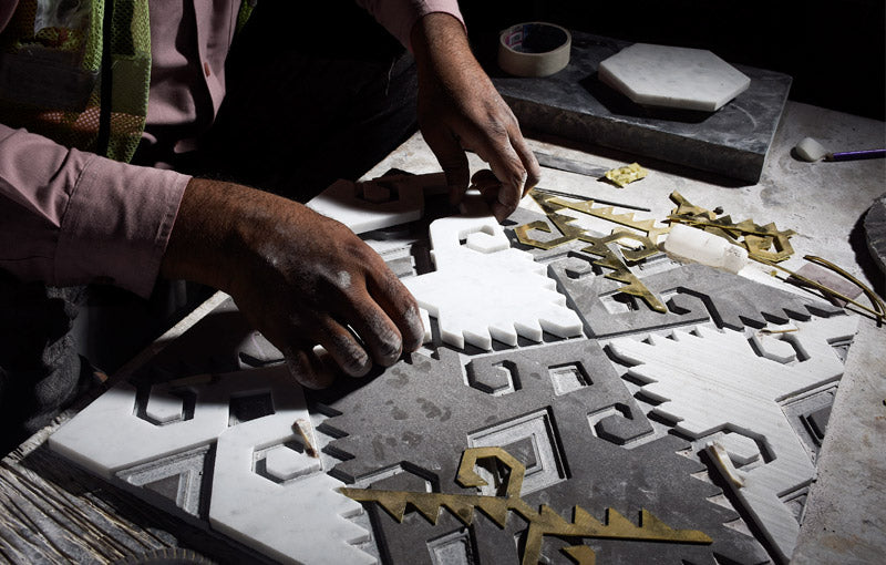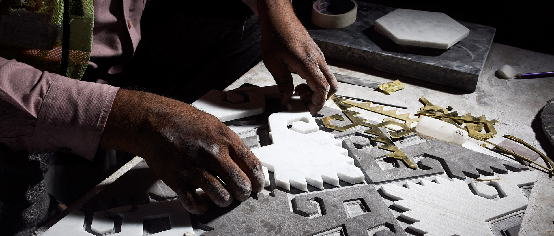 Brass, copper, steel and other alloys are magically fused with various materials like natural stone, wood and glass to create designs such as stylised flora and fossil forms, as well as geometric gridlines evoking, Mondrian motifs to pinstripes mimicking Savile Row suits.