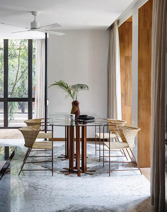 Brass, copper, steel and other alloys are magically fused with various materials like natural stone, wood and glass to create designs such as stylised flora and fossil forms, as well as geometric gridlines evoking, Mondrian motifs to pinstripes mimicking Savile Row suits.