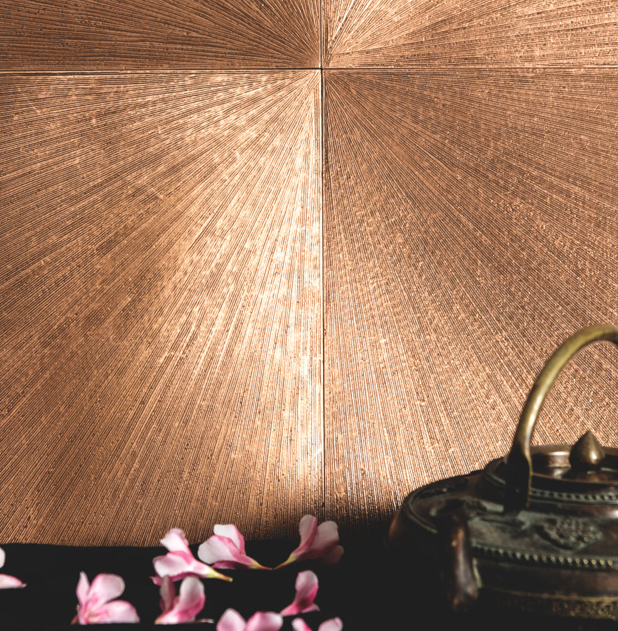 The poetry of natural stone, expressed through the metaphor of hand-beaten metal.