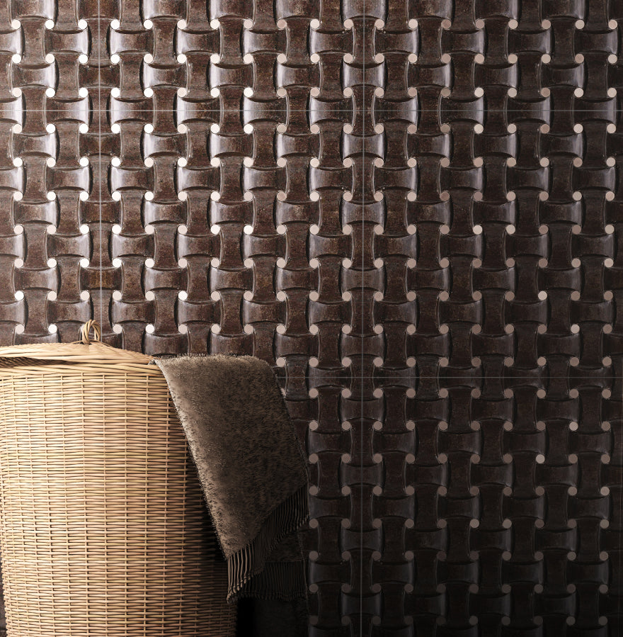 Artfully combining key aspects of two different lines - Metal Magic and Solid Stone - this stunning collection is inspired by traditional basket weaving techniques.