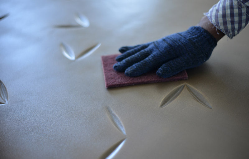 Metal graces stone, wood, glass and other materials with its purity and personality. This cutting-edge technique, that involves bonding the metals in liquid form to the surface, offers a variety of aesthetics and a multitude of different effects, from patina, aged and rusty to sleek and modern